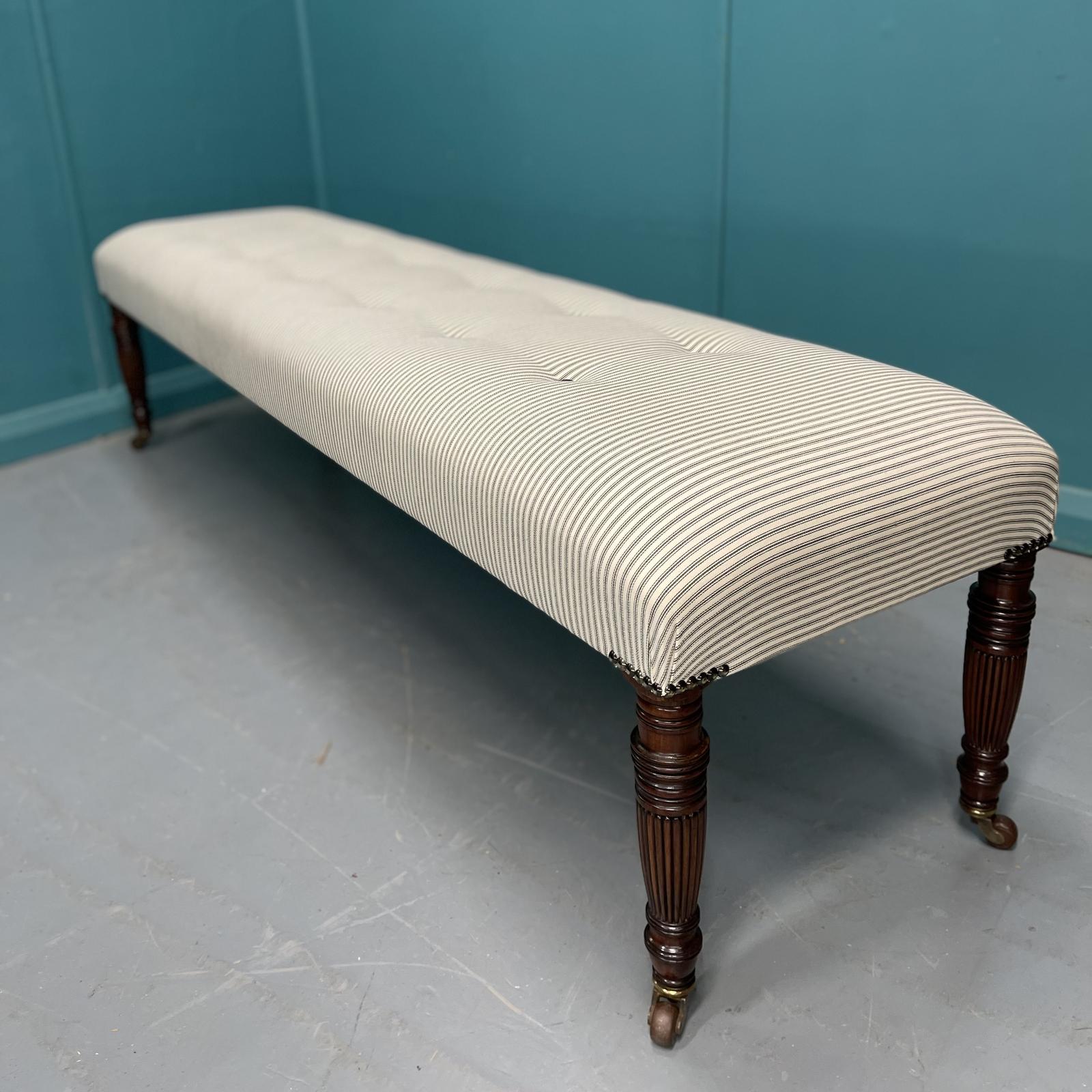 Newly Upholstered Long Stool in Buttoned Ticking (1 of 5)