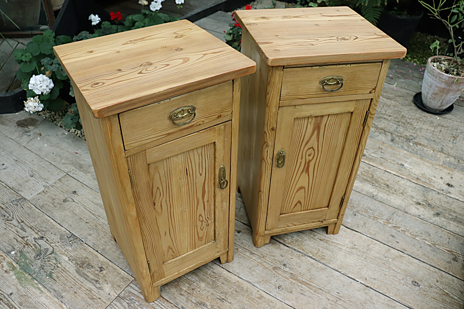 Nice 'Chunky' Pair of Old Stripped Pine Bedside Cabinets / Cupboards - We Deliver!