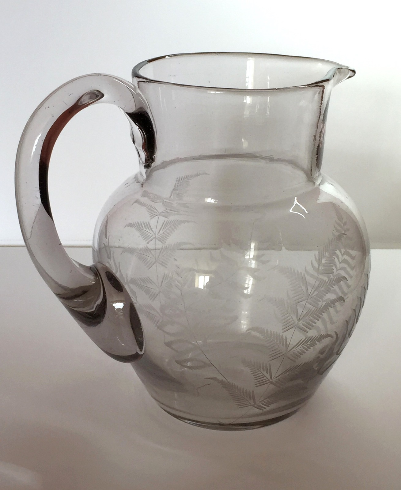 Nice Mid Victorian Hand Blown Glass Pitcher, Engraved with Ferns c.1860