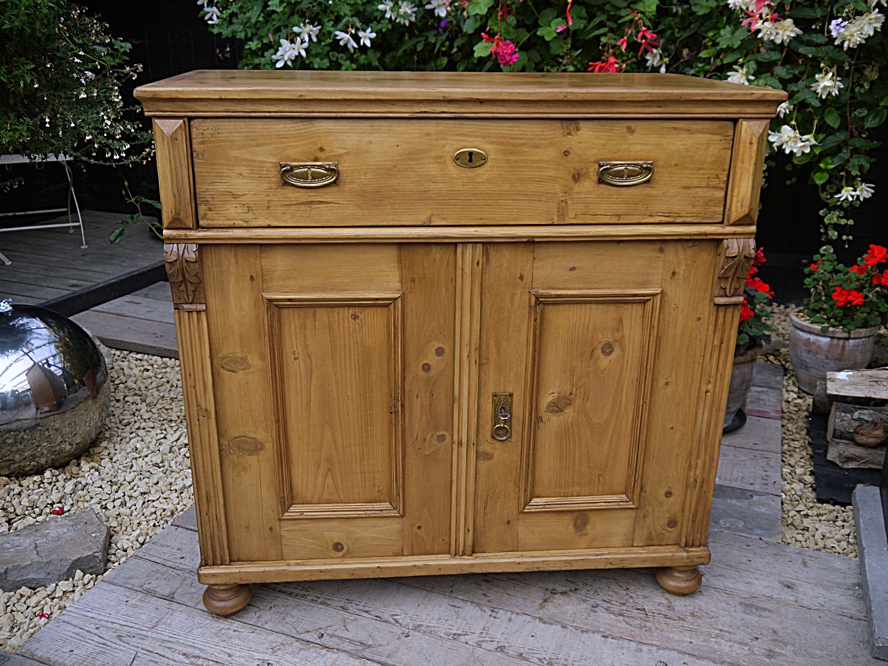 Nice Old Antique Victorian Waxed Pine Dresser Base Sideboard / Cupboard / Cabinet