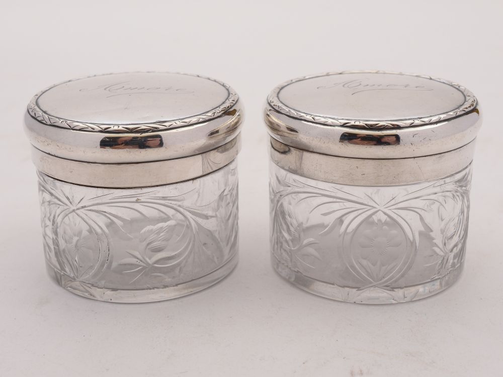 Nice Pair of Silver Topped Cut Glass Jars London 1914