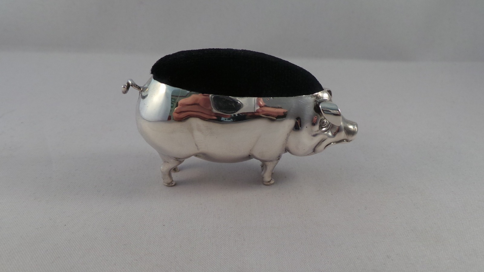 Nice Size Antique Silver Pig Pin Cushion Birmingham 1906