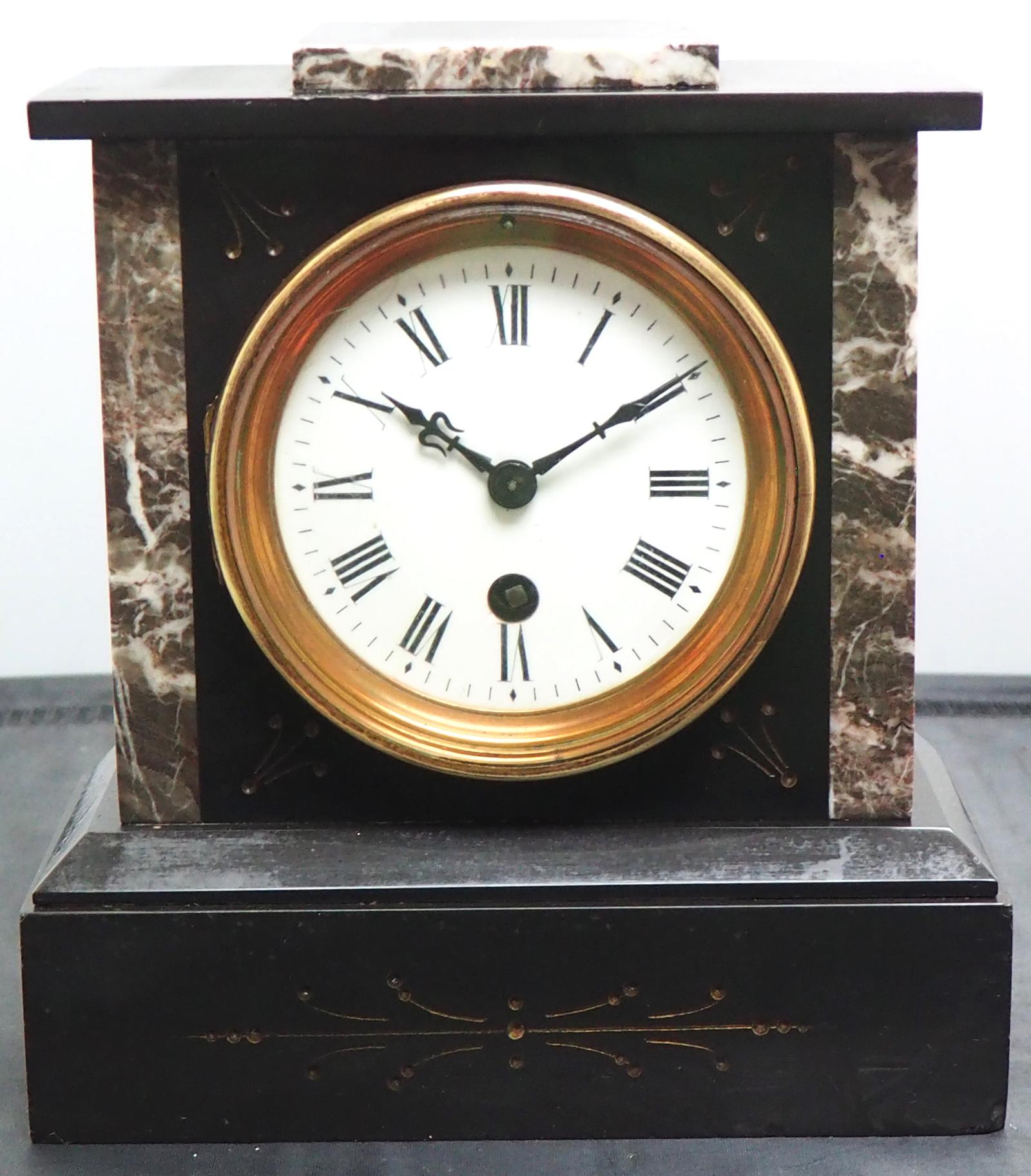 Nice Small French 8-day Slate Mantel Clock – Timepiece Clock with Marble Inlay