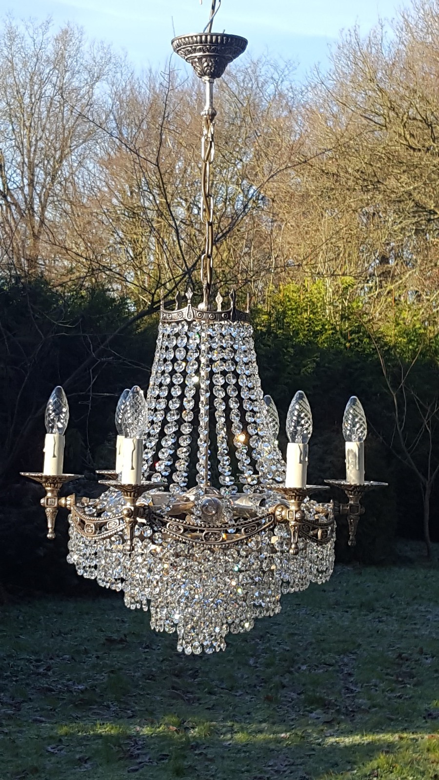 Nickel Plated Brass Vintage French 12 Light Swarovski Crystal Chandelier