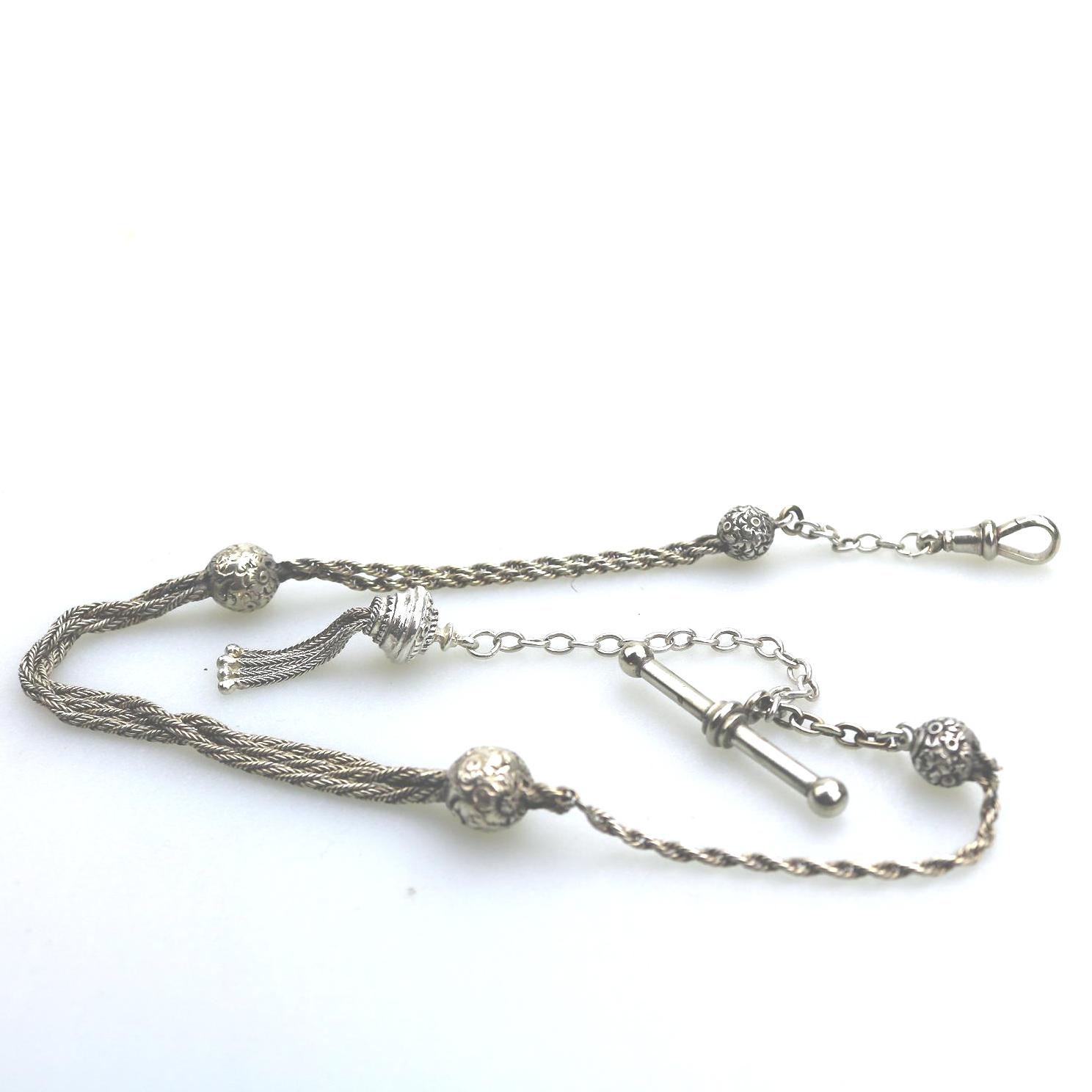 Nickel Silver Pocket Watch Albert / Ladies Albertina 19th Century