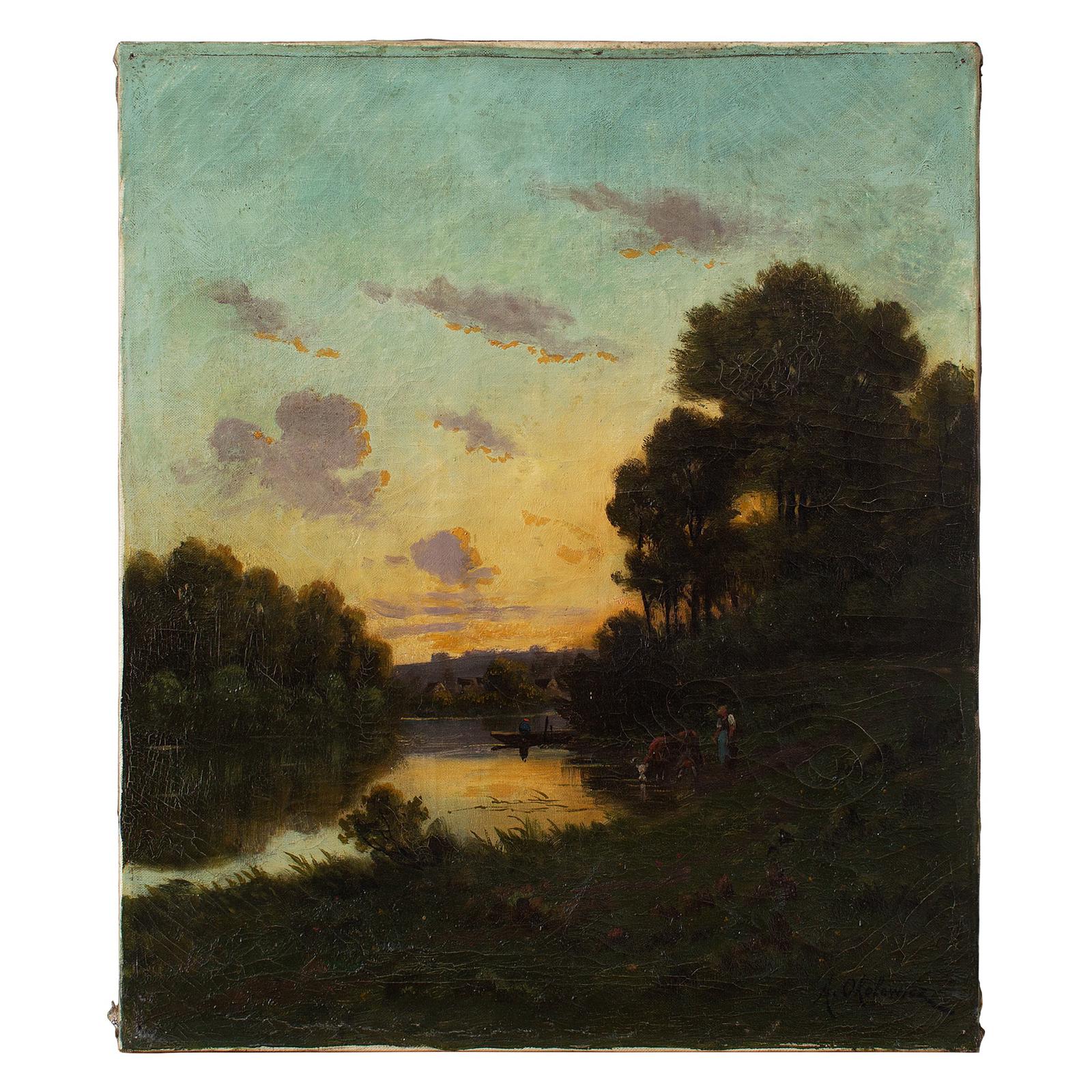 Nicolaï Alexandovitch Okolowicz, River Landscape With Sunset, Fisherman & Cattle