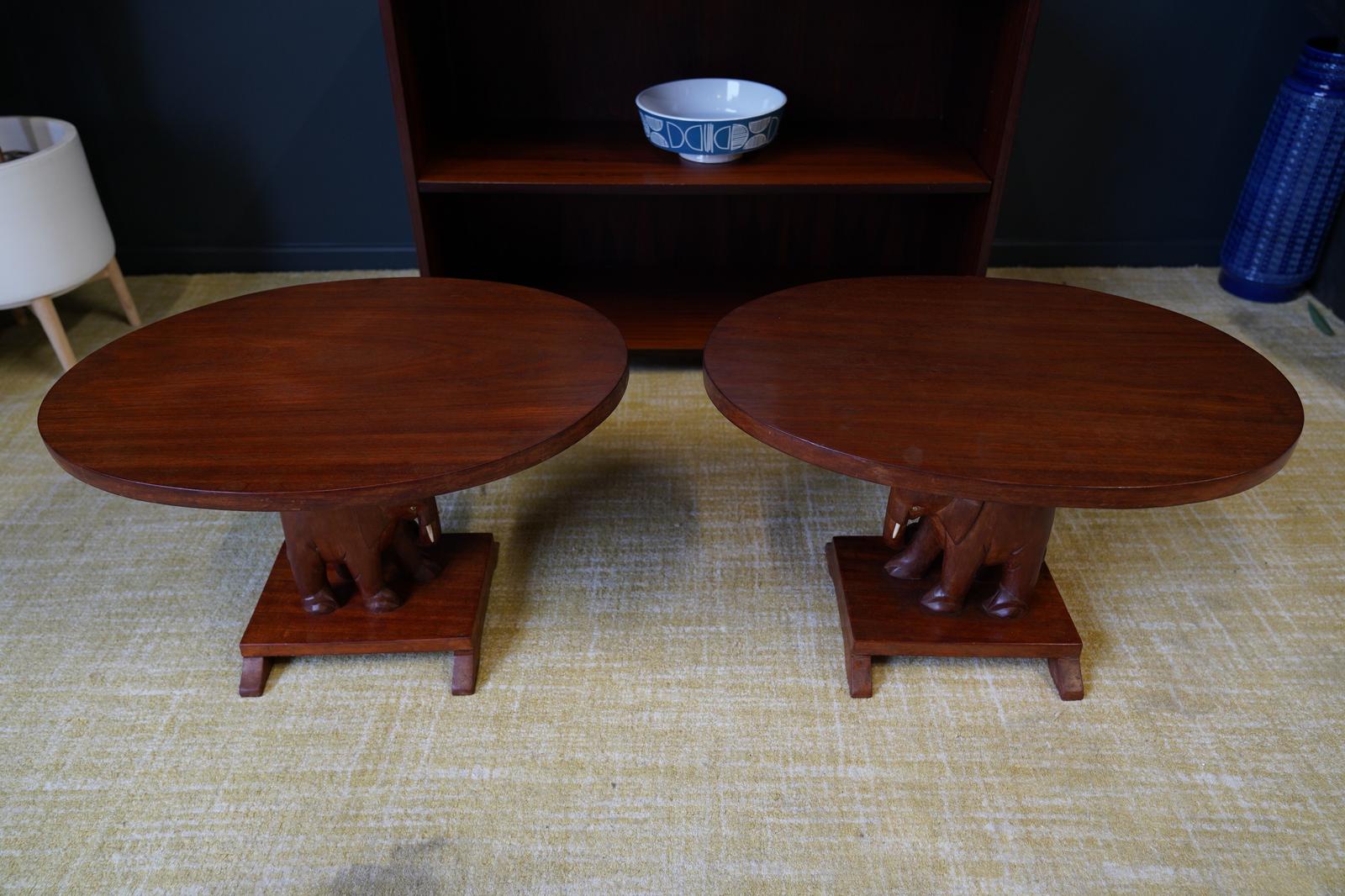 Nigerian Mahogany Side Tables Elephant Base 1950-1960s