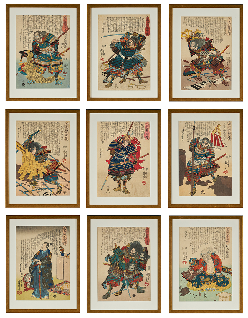 Nine Japanese Ukiyo-E Prints by Utagawa Kuniyoshi, Edo Period, Mid 19th Century