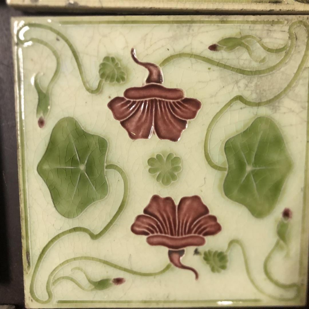 Nine Original Victorian Ceramic Fireplace Tiles with Stylised Nasturtium Design 1899 (1 of 8)