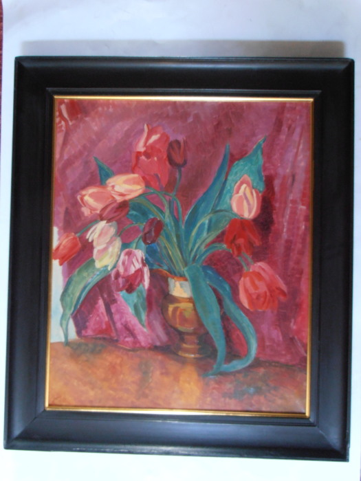 Nora Summers - Oil - Red Tulips in a Lustre Jug