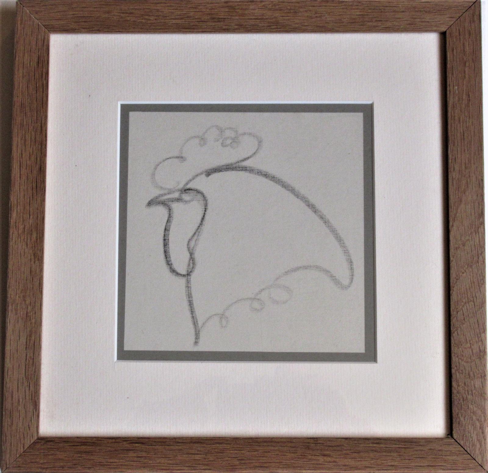 Norman Dudley Short, Cockerel, Original Crayon Drawing c.1940 Framed