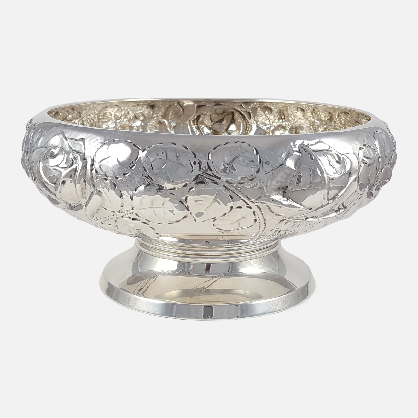 Norwegian Silver Repousse Hammered Bowl N.M Thune 1930s 639.1 Grams