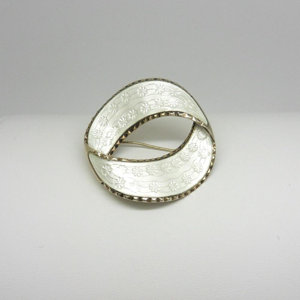Norwegian Silver & White Enamel Mobius Design Brooch