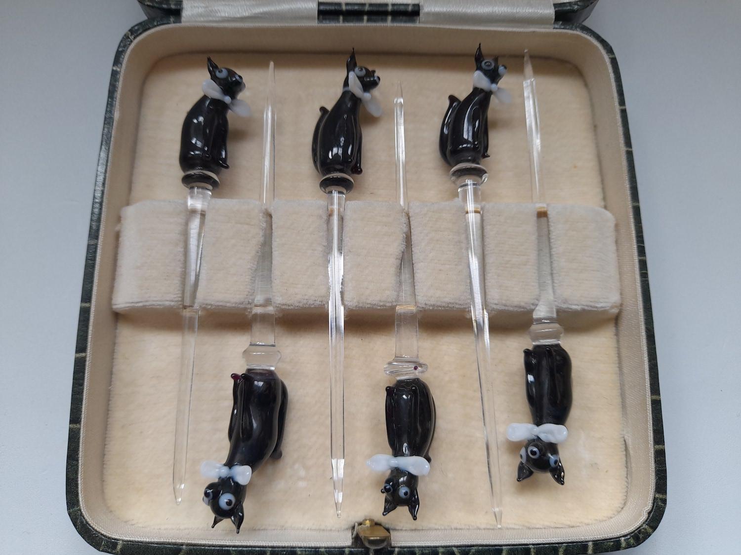 Novelty Boxed Set of Six Glass Cat Cocktail Sticks 1950s (1 of 7)
