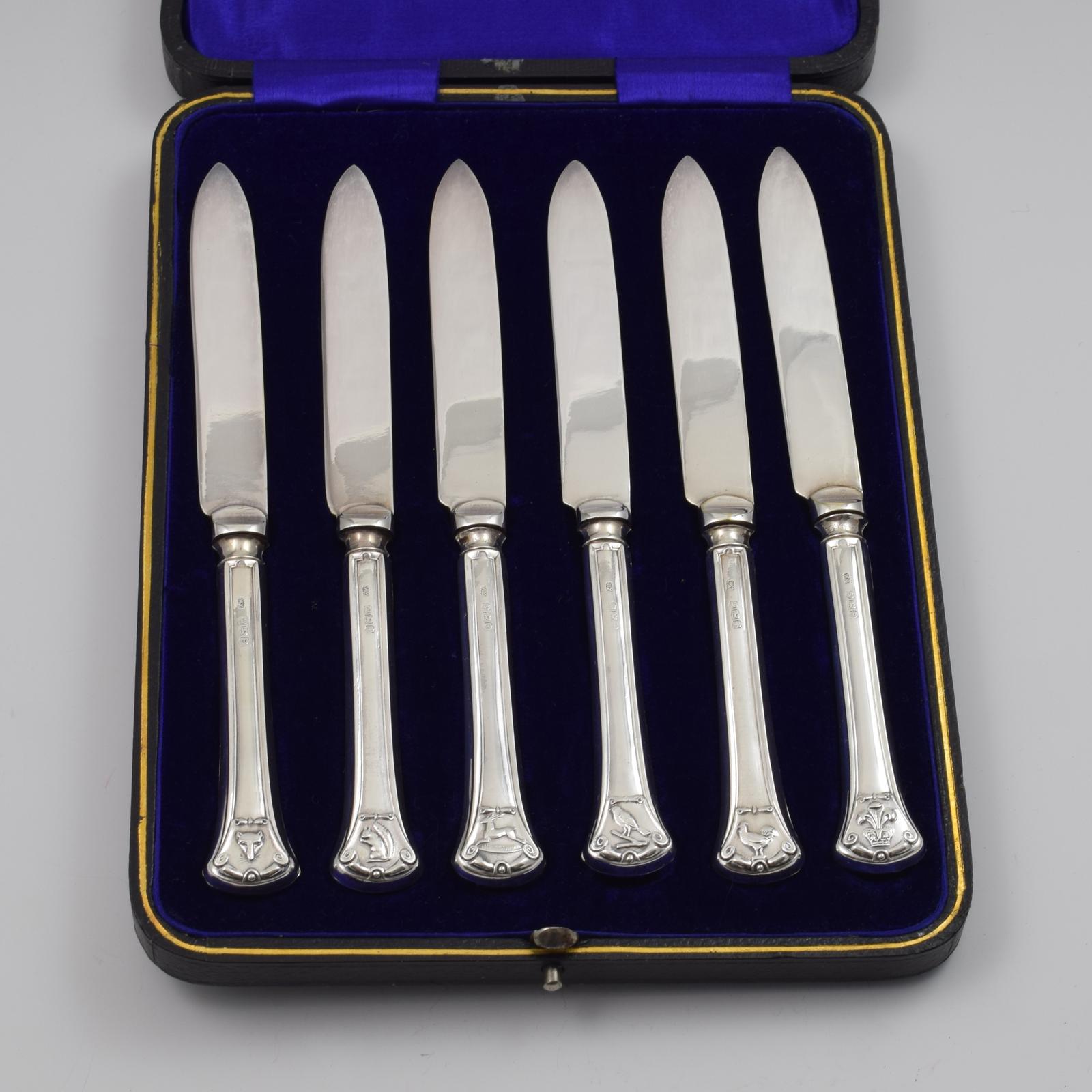 Novelty Cased Silver Fruit Knives Animals & Prince of Wales Feathers 1922 (1 of 6)