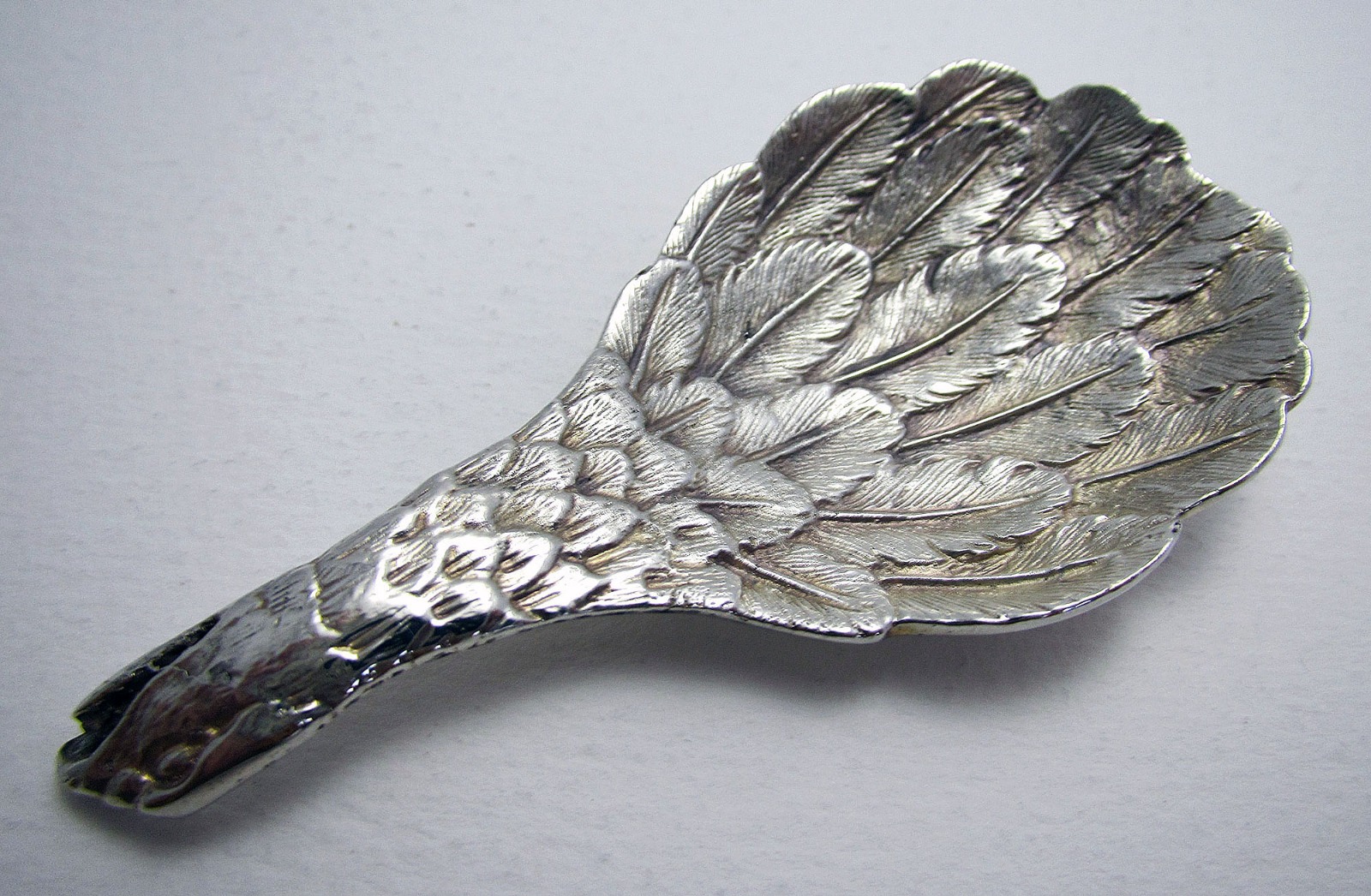 Novelty Eagle's Wing 1977 Solid Sterling Silver English Tea Caddy Spoon by C J Vander. London Hallmarked