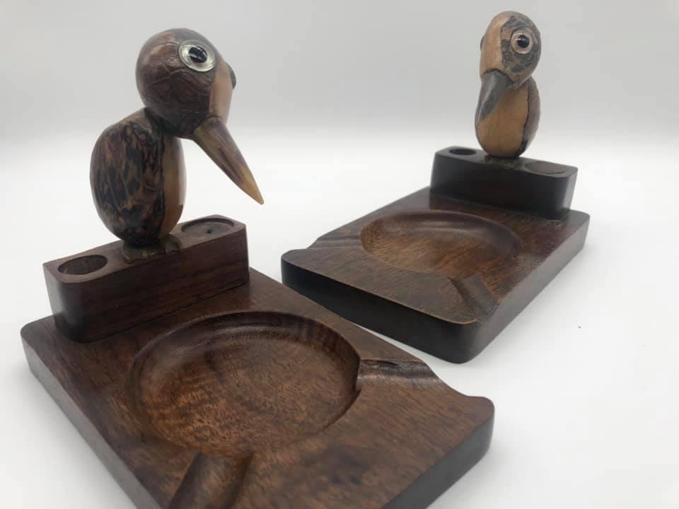 Novelty Kitsch Art Deco Bird Ashtrays Pair