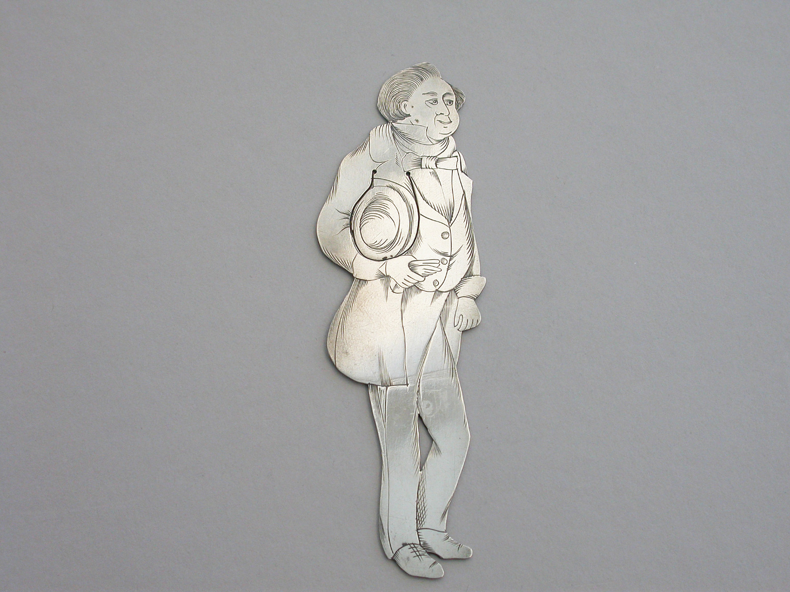 Novelty Silver Figural Bookmark Charles Dickens 'Mr Turveydrop' by J F Fradley, New York c.1901-1910