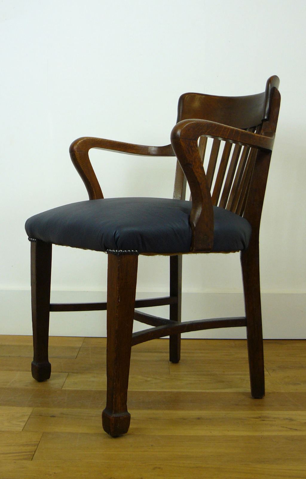 Oak 1920s Office Desk Chair with New Blue Leather (1 of 1)