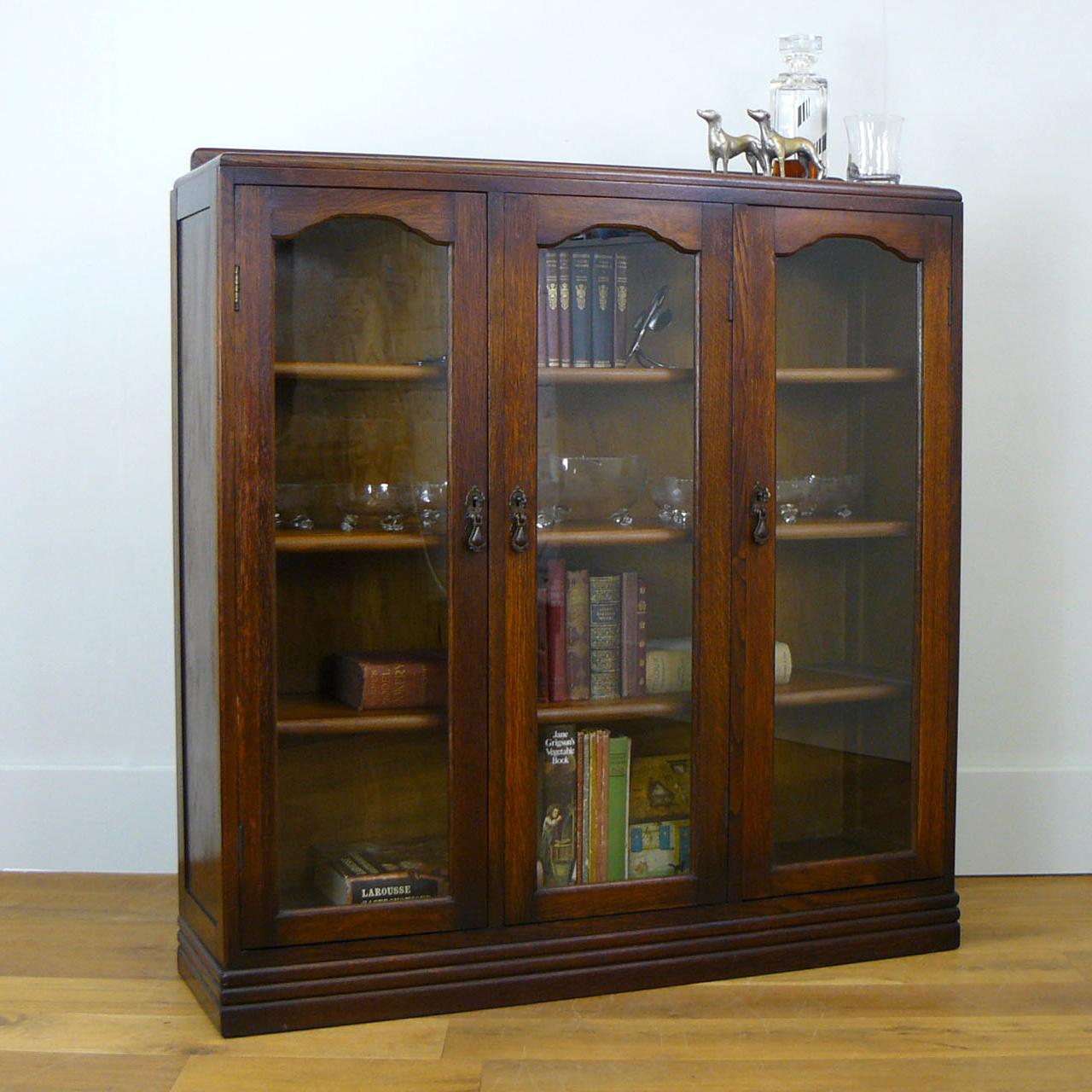 Oak 3 Door 1930s Vintage Bookcase with Keys