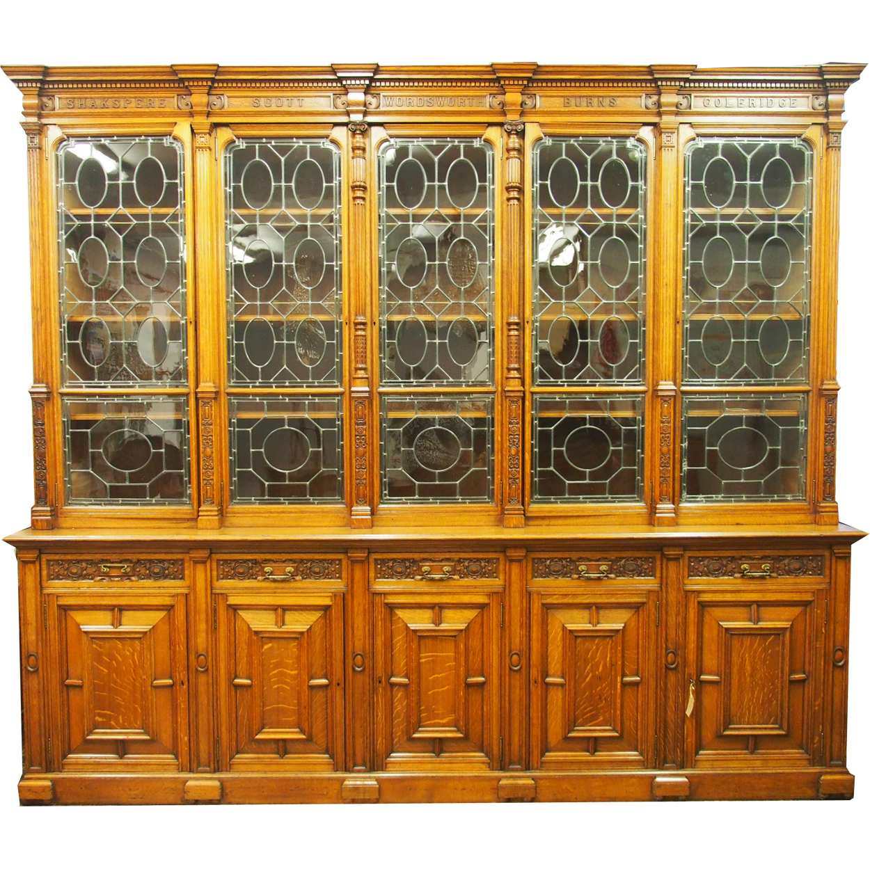 Oak 5 Door Cabinet Bookcase with British Authors Names