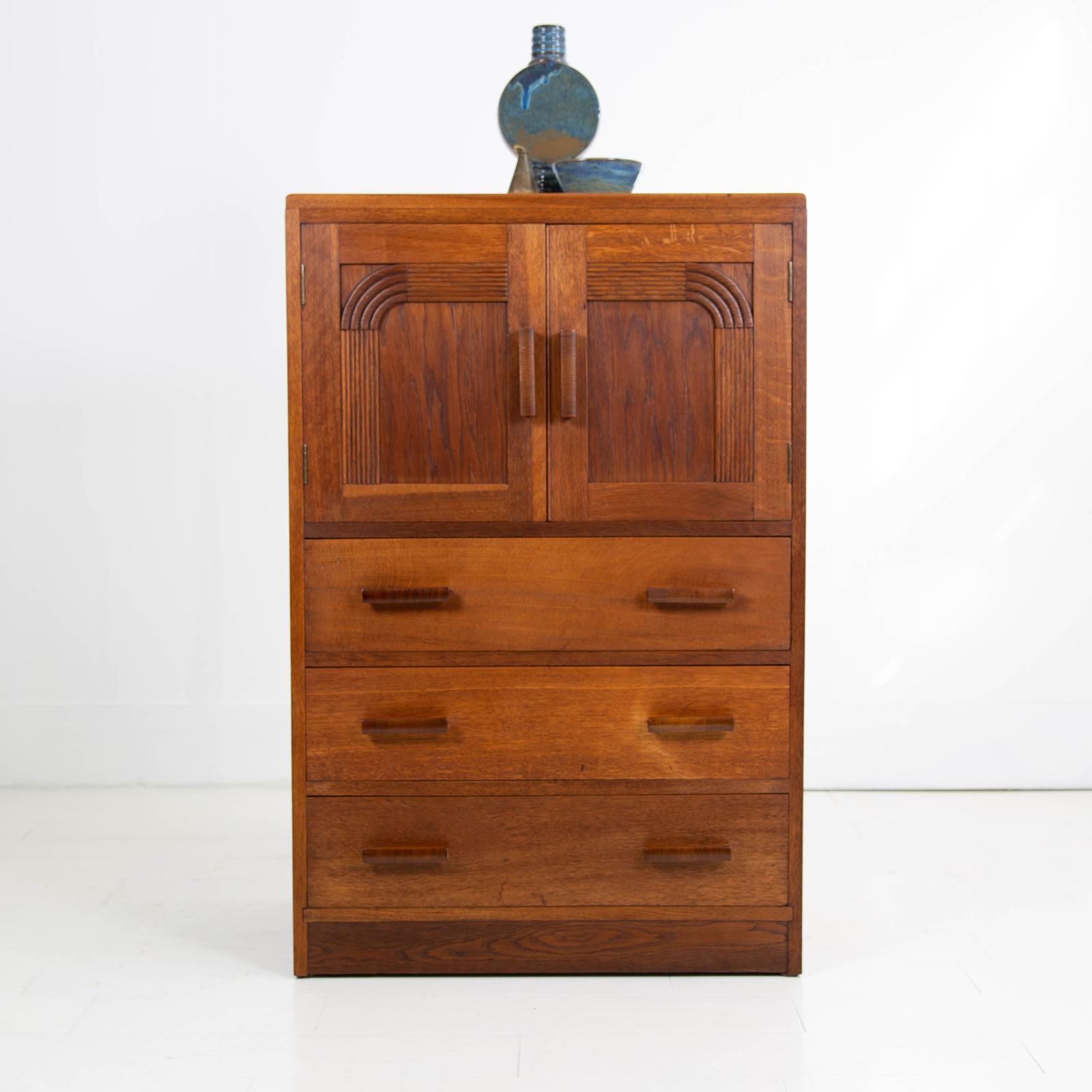 Oak Art Deco Tallboy Cabinet 3 Drawers c.1930