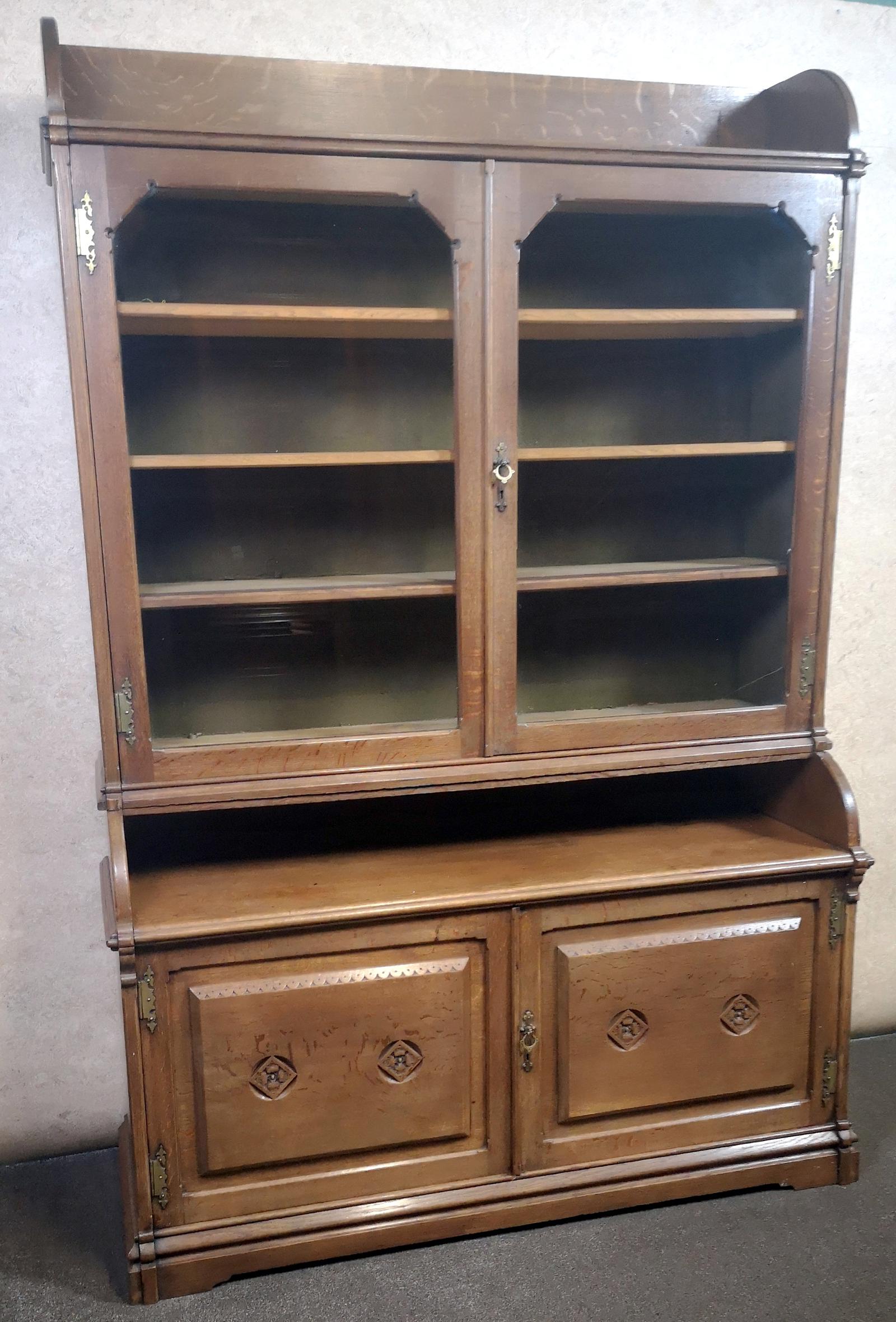 Oak Arts & Crafts Bookcase in the Gothic Style