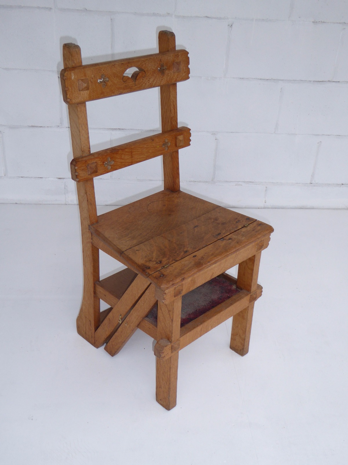 Oak Arts & Crafts Influence Metamorphic Chair / Step Ladder