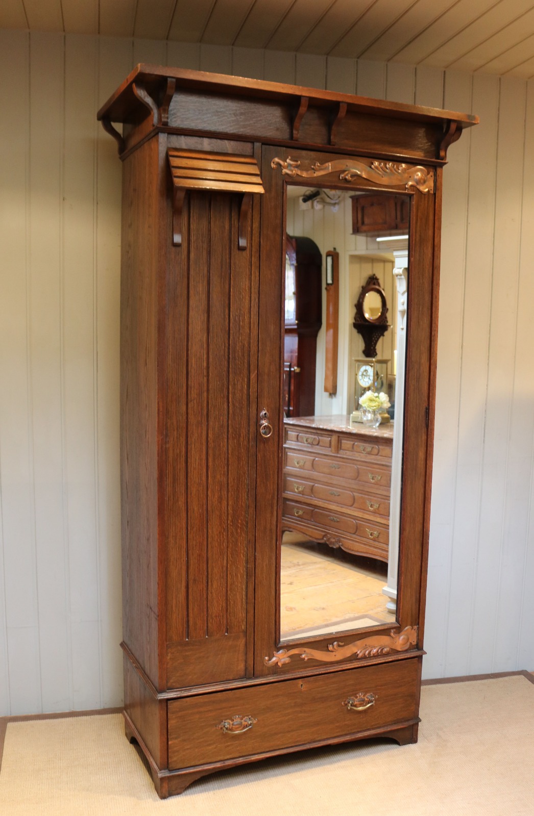 Oak Arts & Crafts Mirrored Wardrobe (1 of 1)