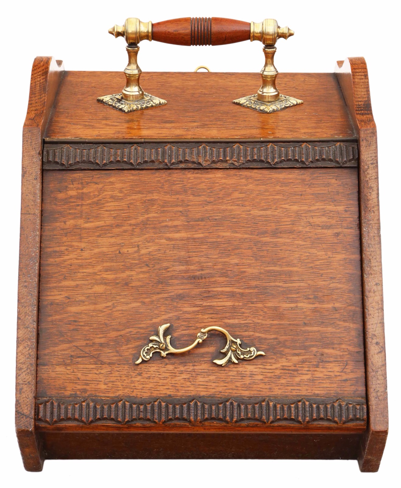 Oak & Brass Coal Scuttle Box Purdonium c.1920 (1 of 1)