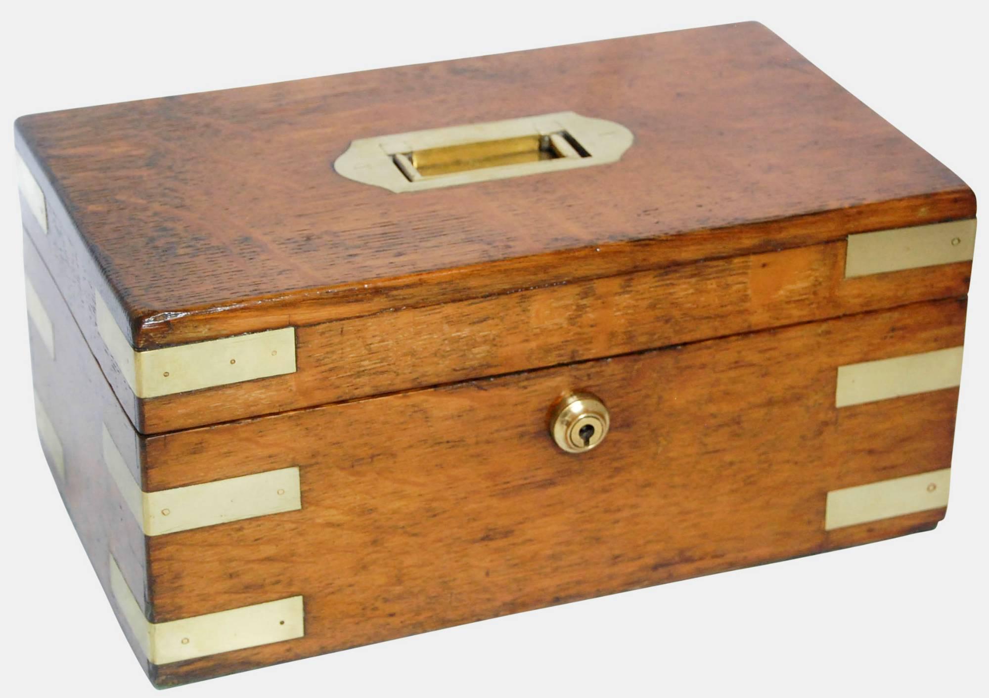 Oak & Brass Two Sectioned Military Campaign Box with Original Bramah Lock & Key