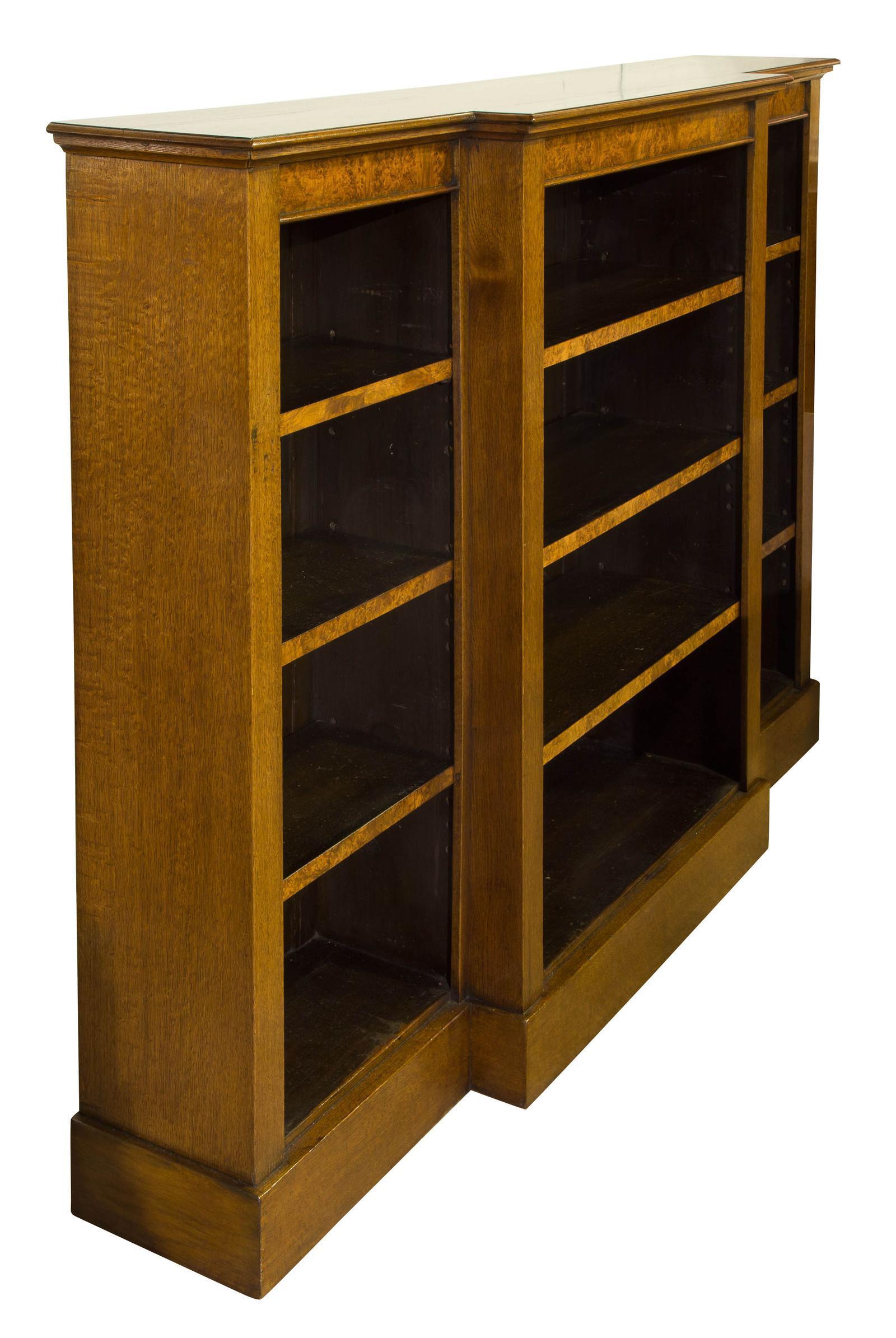 Oak Breakfront Open Bookcase with Adjustable Shelves