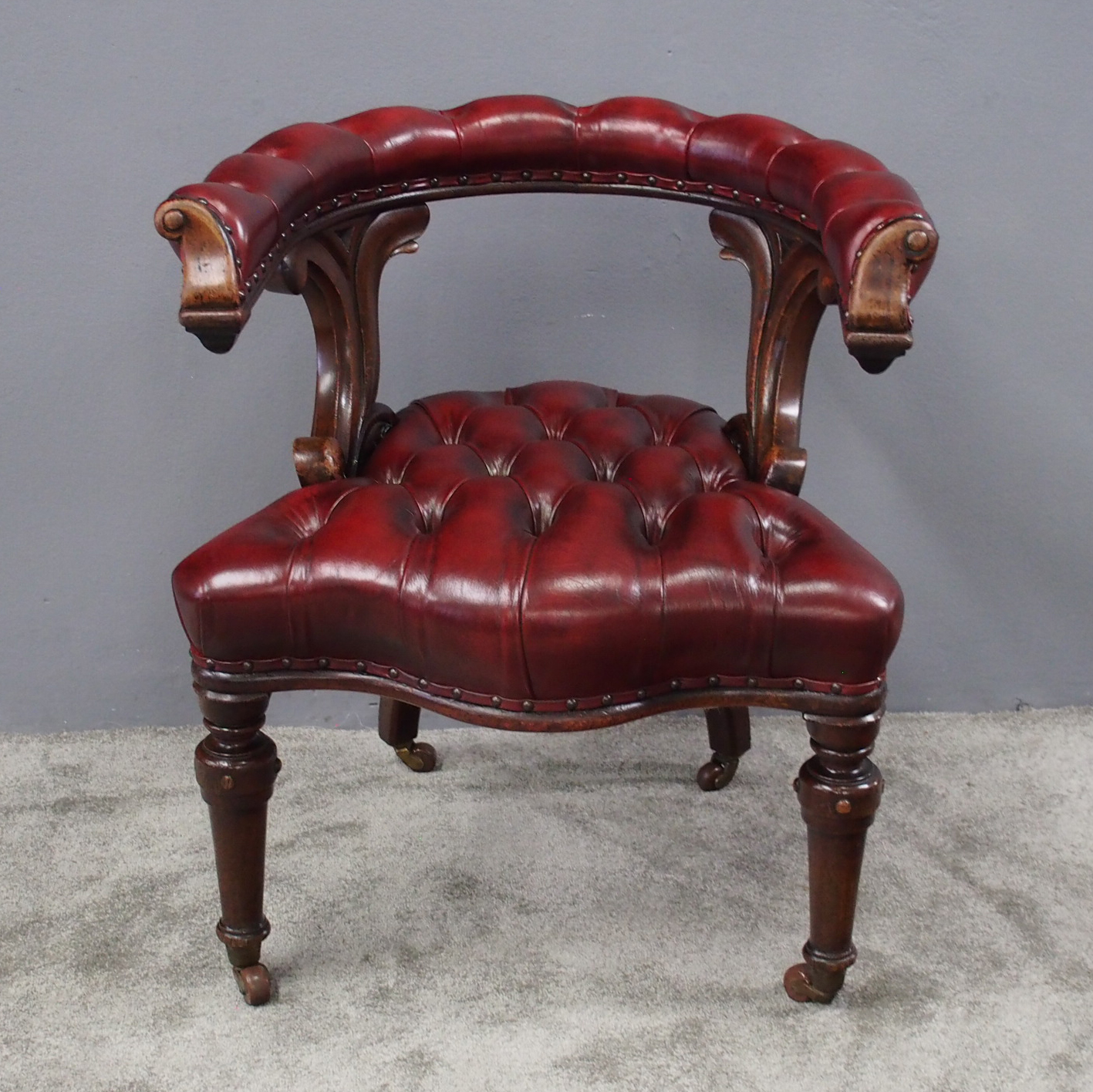 Oak & Burgundy Leather Horseshoe Captains Chair c.1870