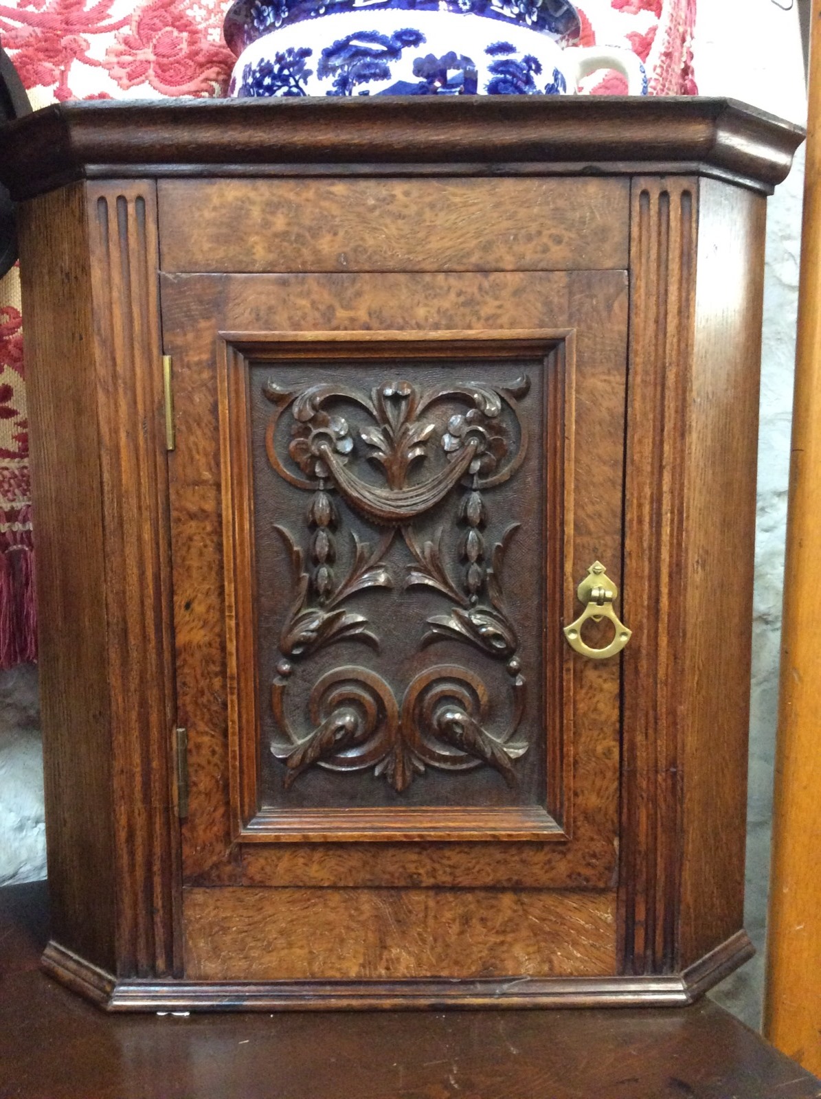 Oak & Burr Walnut Corner Cupboard c.1900
