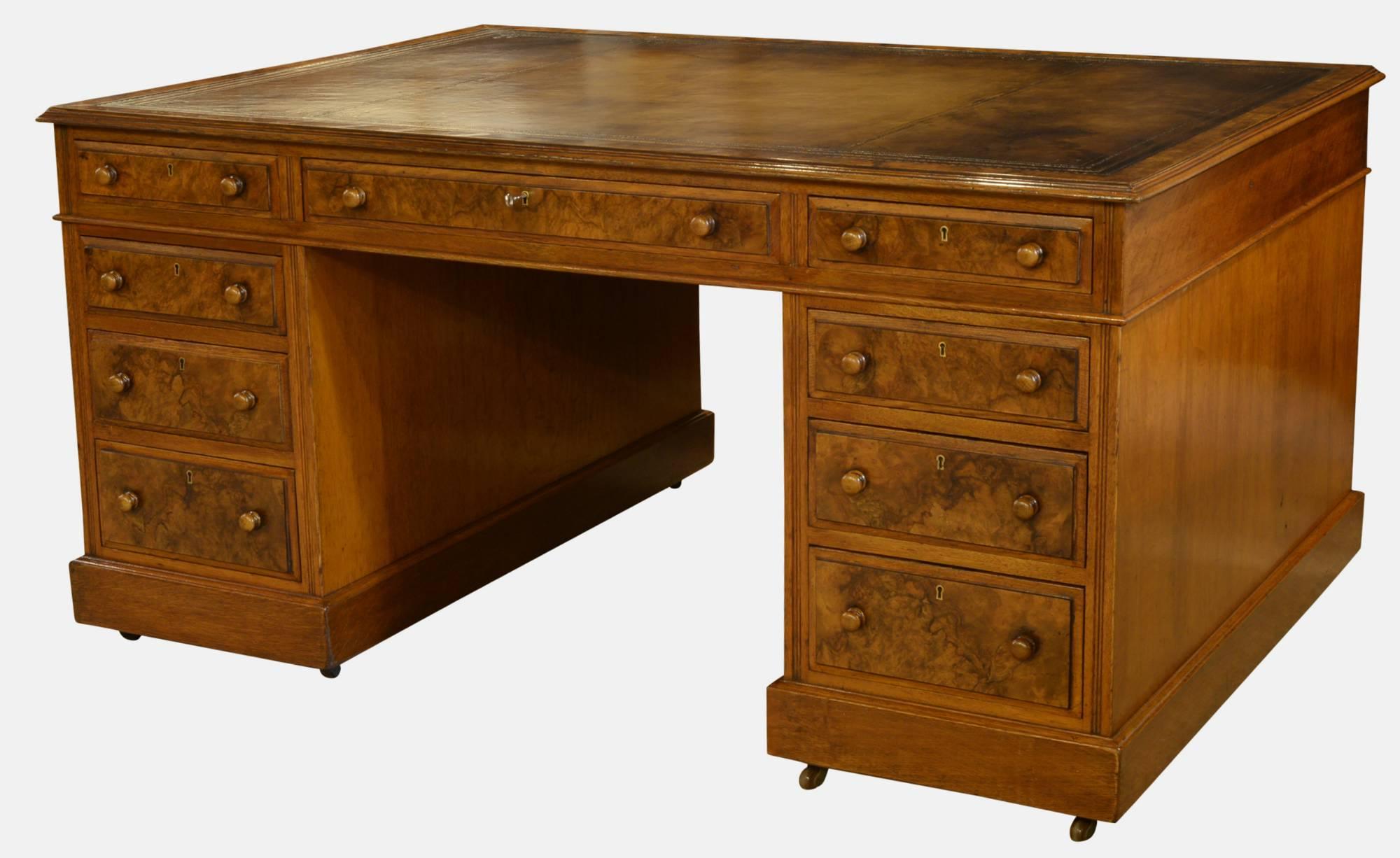 Oak & Burr Walnut Pedestal Desk c.1880 (1 of 1)