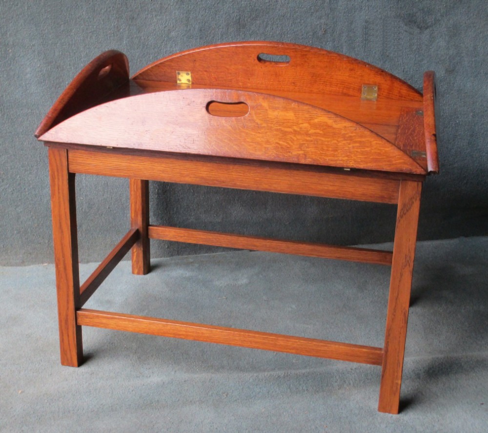 Oak Butlers Tray with Folding Sides On Later Stand C.1890