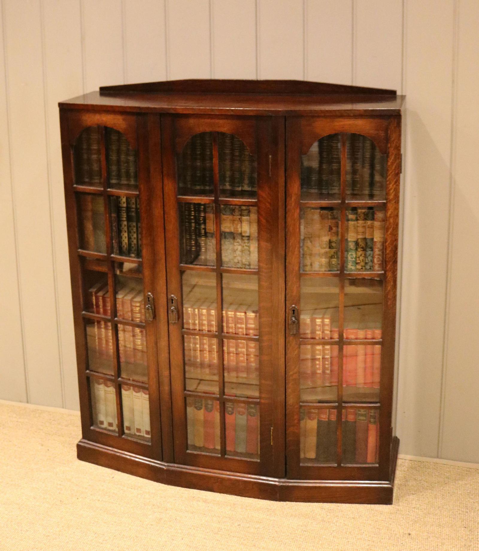 Oak Canted Front Glazed Bookcase
