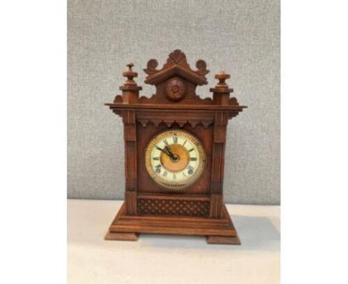 Oak Cased Bracket Clock, Roman Chapter Ring, Carved & Finial Top c.1900