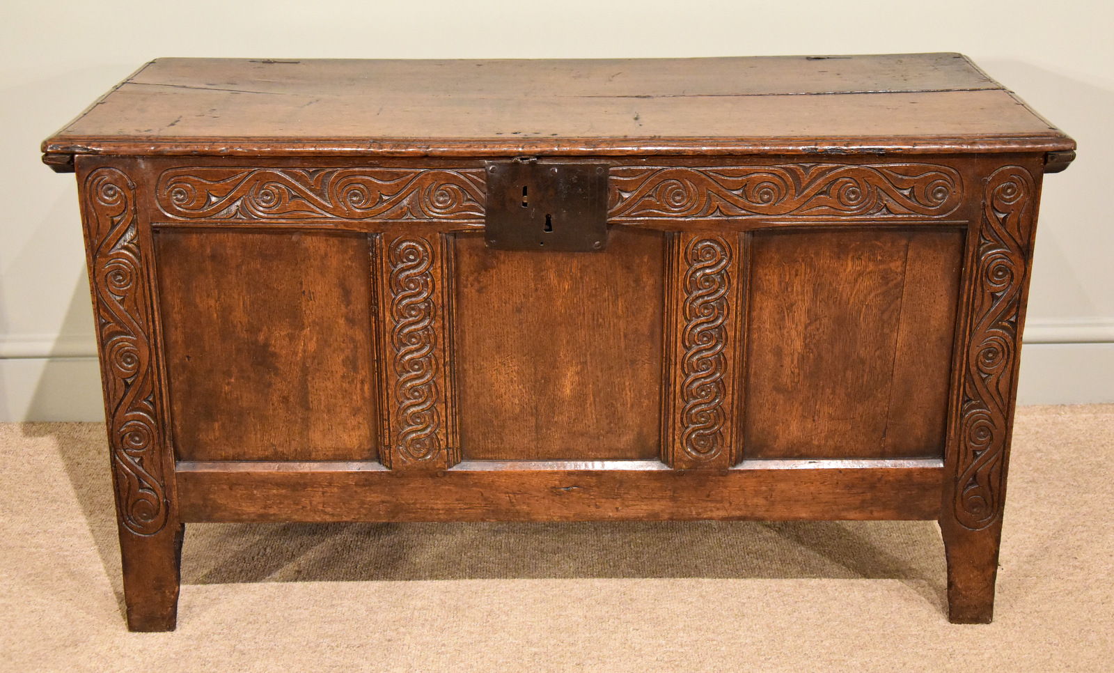Oak Coffer Three Paneled Handsome Early 18th Century (1 of 1)
