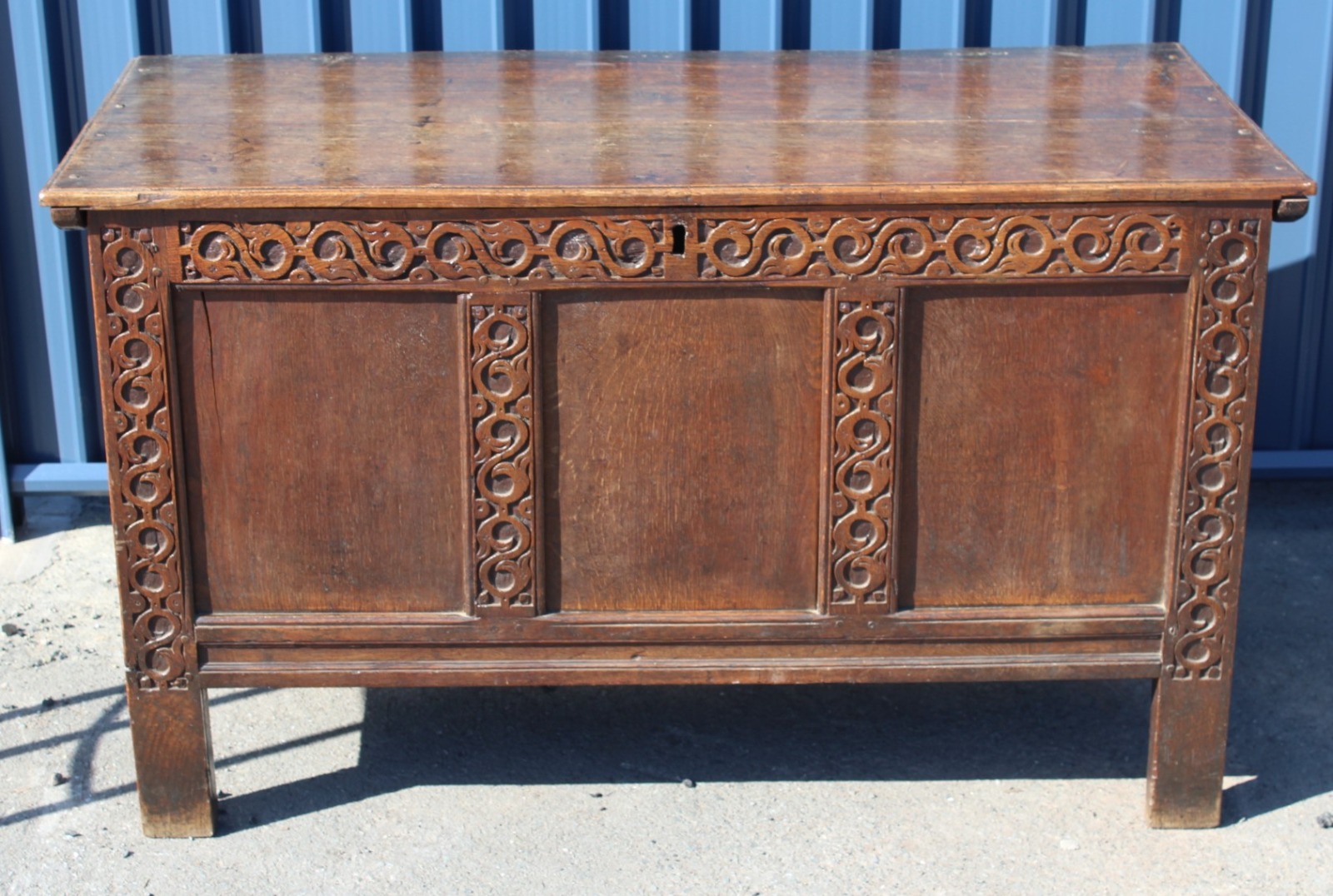 Oak Coffer with Carved Panels Good Storage c.1850