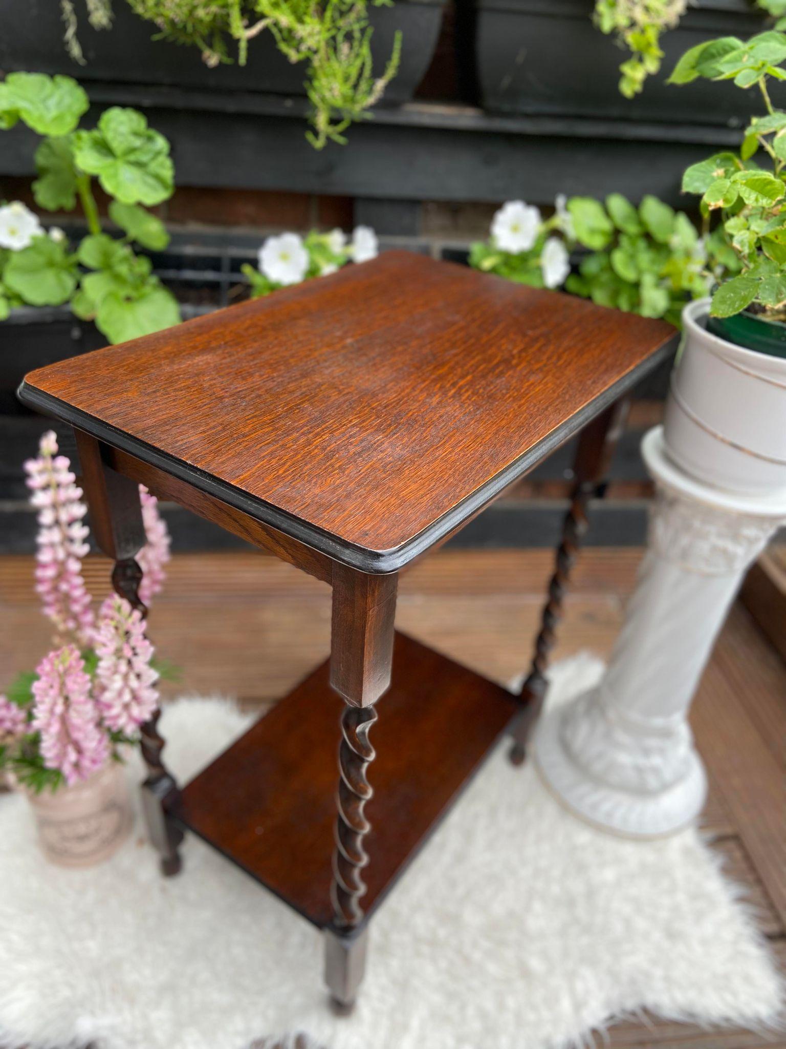 Oak Edwardian Side Table / Barley Twist Legs / English C1910