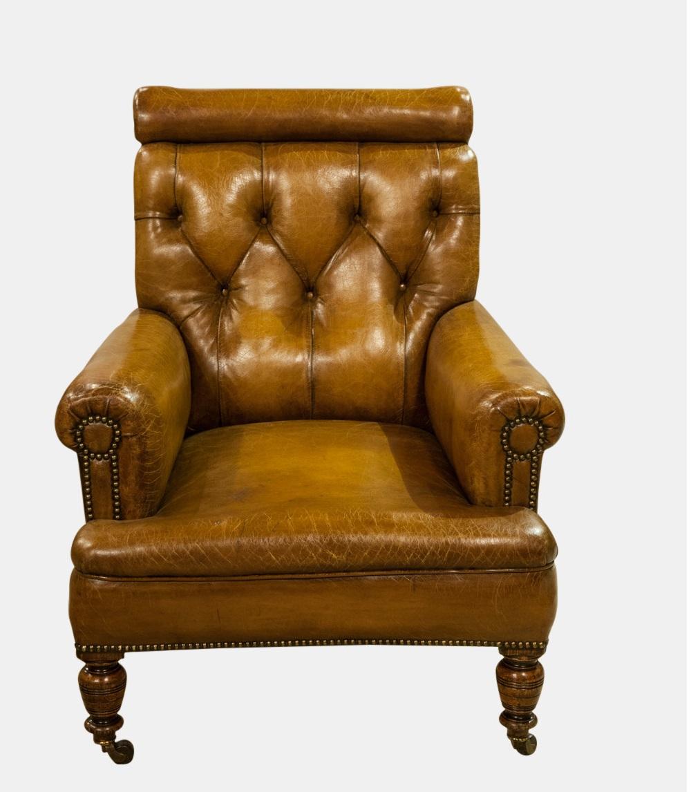 Oak Framed Deep Buttoned Club Chair