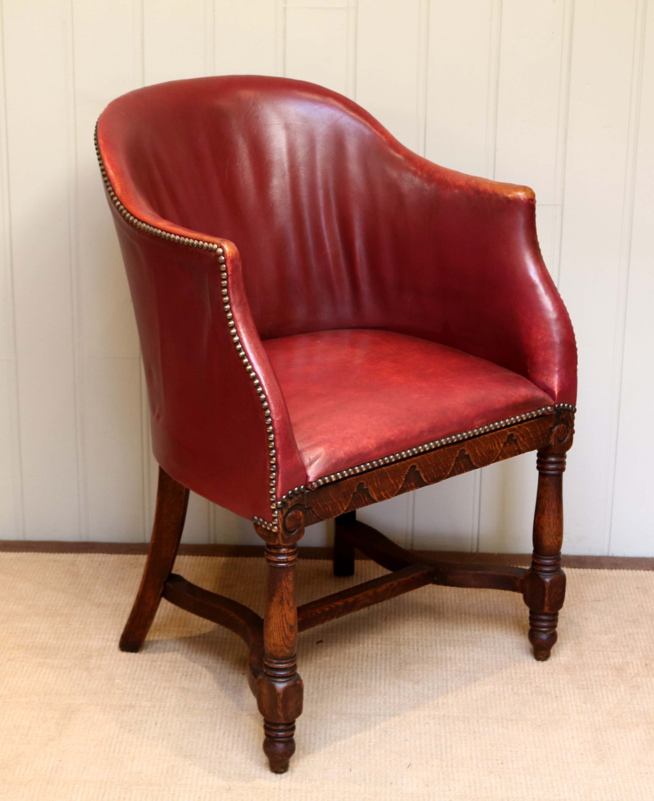 Oak Framed Leather Tub Chair c.1910 (1 of 1)