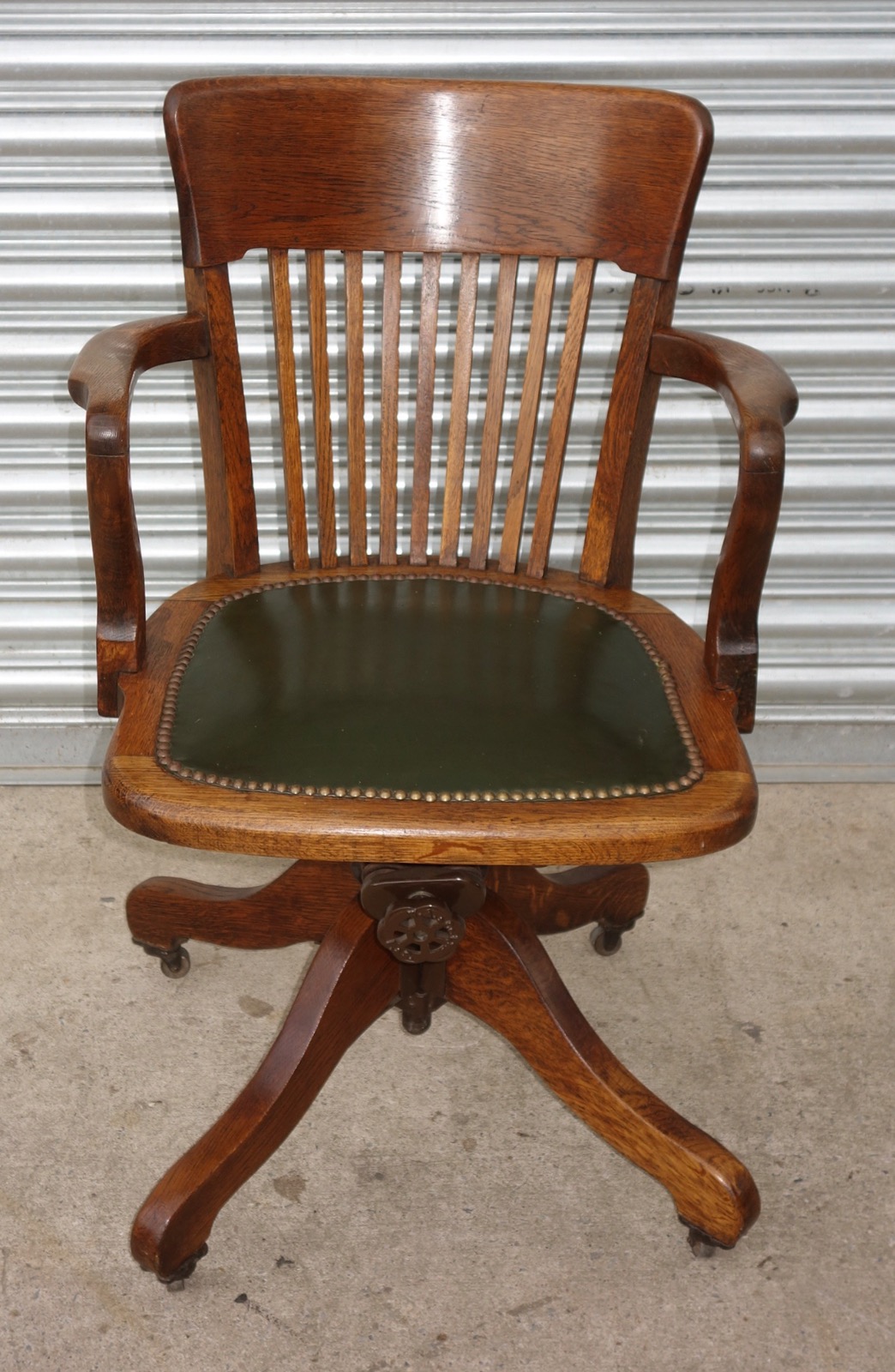 Oak Green Leather Swivel Office Desk Study Chair