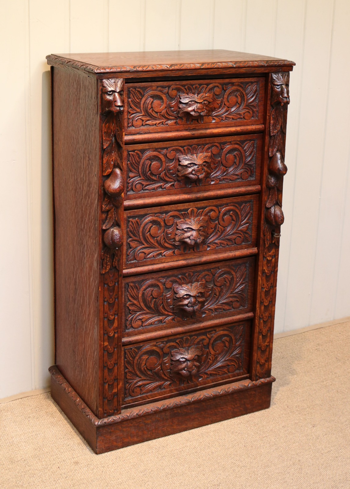 Oak Green Man Wellington Chest c.1890 (1 of 1)