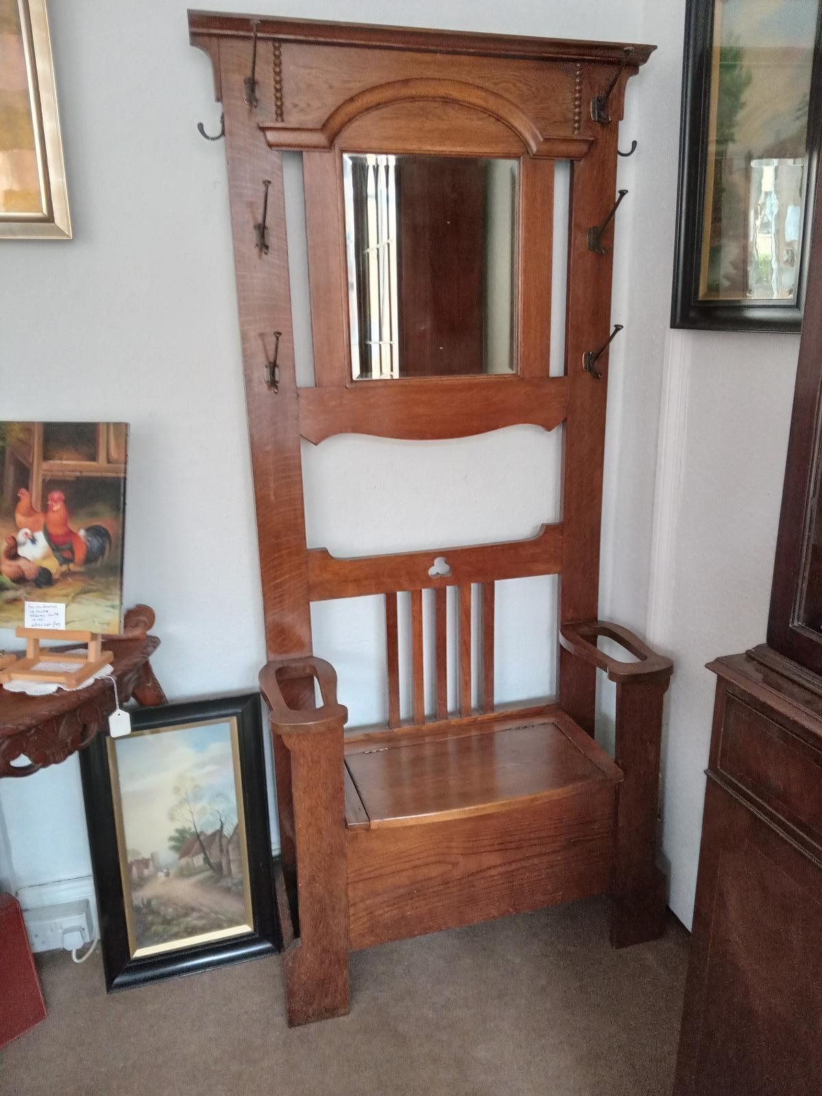 Oak Hall Stand with Bevel Edged Mirror 1930s