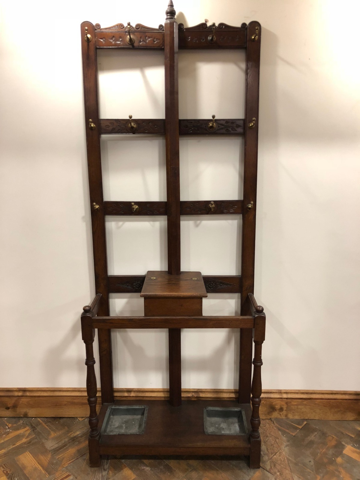 Oak Hat & Coat Hall Stand with 12 Brass Hooks (1 of 1)
