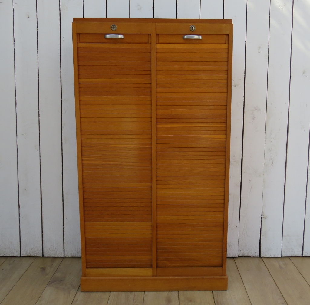Oak Industrial Double Tambour Front Cabinet