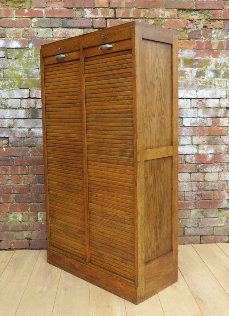 Oak Industrial Tambour Front Haberdashery Cabinet