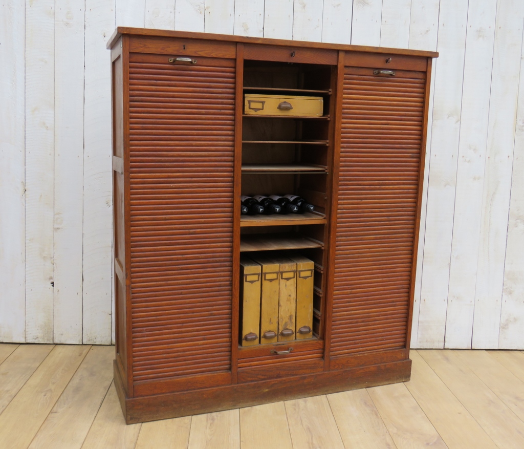 Oak Industrial Triple Tambour Front Cabinet